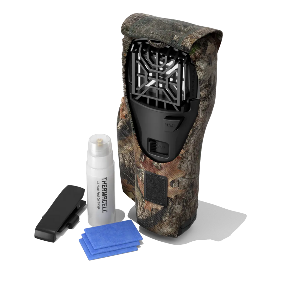 The Thermacell® MR300 Portable Mosquito Repeller creates a 15' no-fly zone for pesky mosquitoes, so you can enjoy your time outdoors without being bothered. There's no scent, no mess, no open flame, and no smoky candles. Just a quiet, invisible shield of insect repellent around your campsite, stand, or backyard get-together. The light, portable system makes it easy to pack in the truck or in a backpack. Also features an accessory mounting system, which allows you to attach the included holster. DEET-free. The Thermacell MR300 Portable Mosquito Repeller includes a camouflage holster, 3 repellent mats, and 1 fuel cartridge for up to 12 hours of refills. Mfrs. 1-year limited warranty. 7.9"H x 3.9"W x 2"D. Weight: .8 lbs.